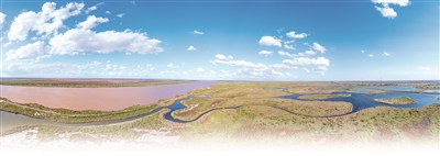 图①:山东东营黄河口湿地鸟瞰。 图片来源:视觉中国